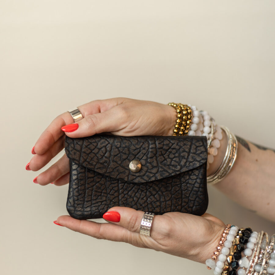 Porte-monnaie en cuir · noir doré craquelé